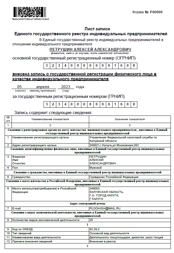 Индивидуальный предприниматель Петрушин Алексей Александрович